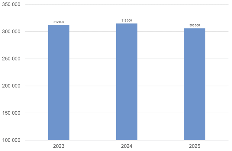 Av alle dekkede tolketimer i 2025, var det 163 000 timer med norsk tegnspråk, 127 000 timer med tolk-ledsaging og 17 000 timer med skrivetolking.